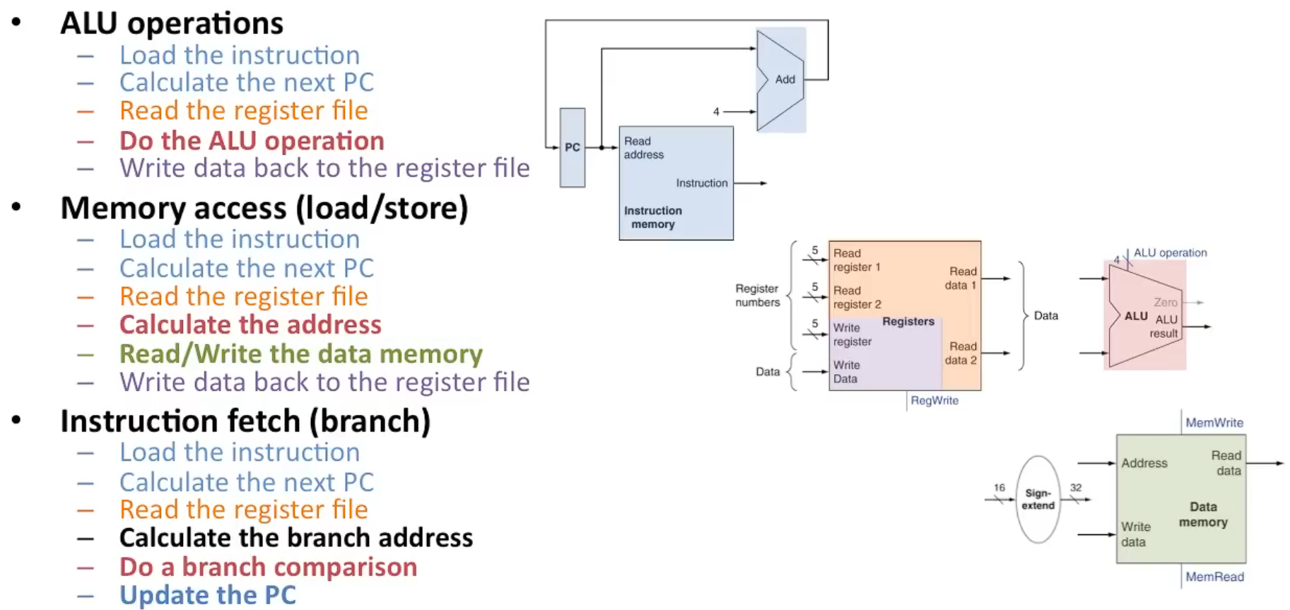 따라서 이 세 가지 모두 ALU를 사용하지만, 각각 다른 방식으로 사용된다.