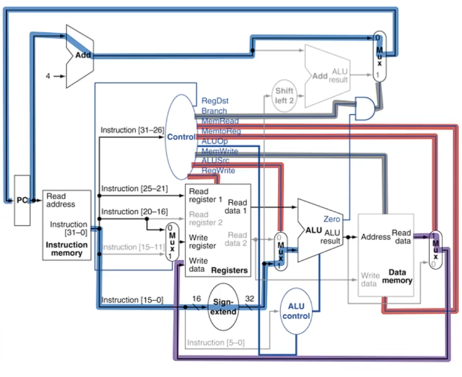 - ALU Operation: 명령어에 따라 ALU가 수행할 연산을 설정한다. 예를 들어, add는 덧셈, 분기 시에는 비교 연산을 수행한다.