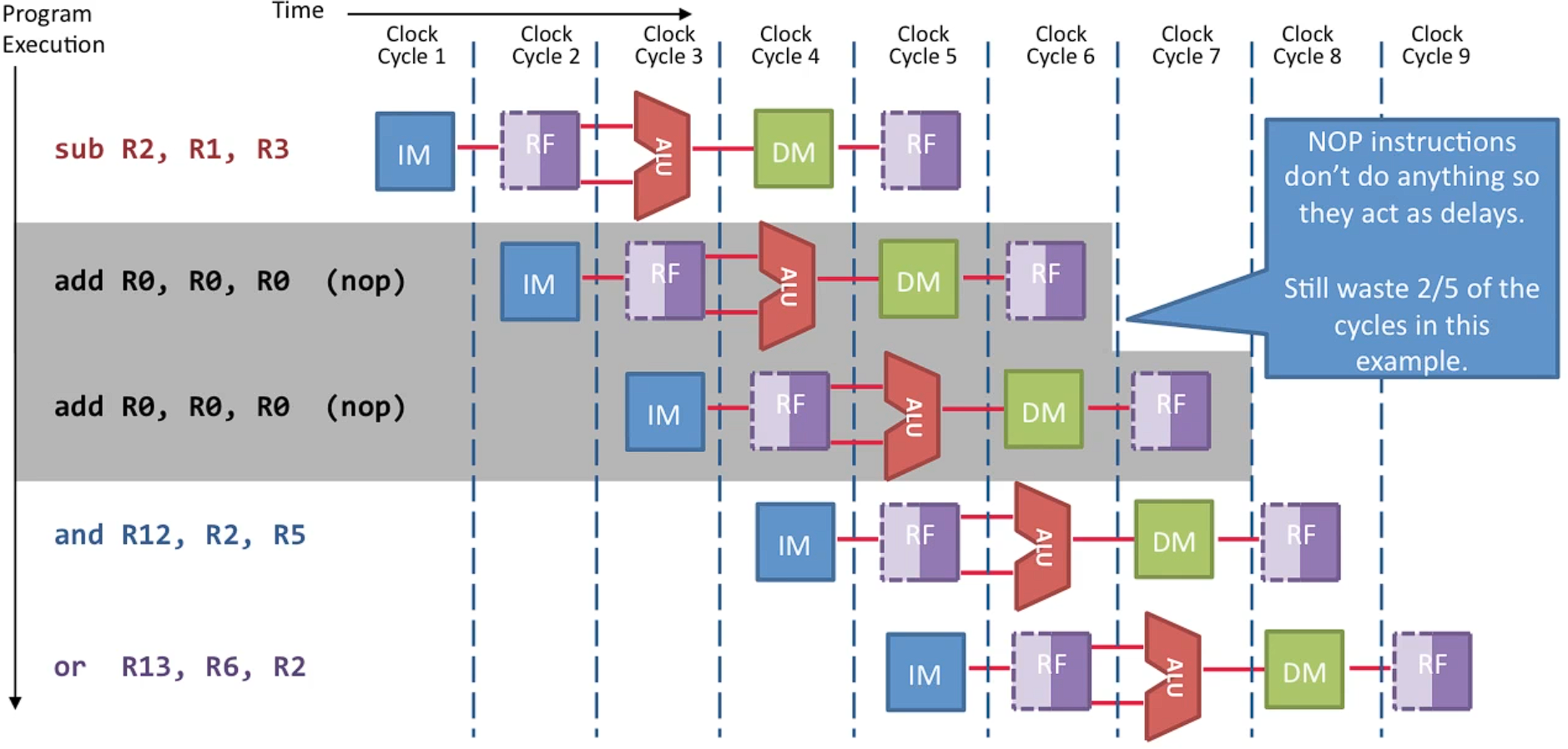 - And 명령어를 지연시켜 Subtract 명령어가 결과를 준비할 시간을 제공.