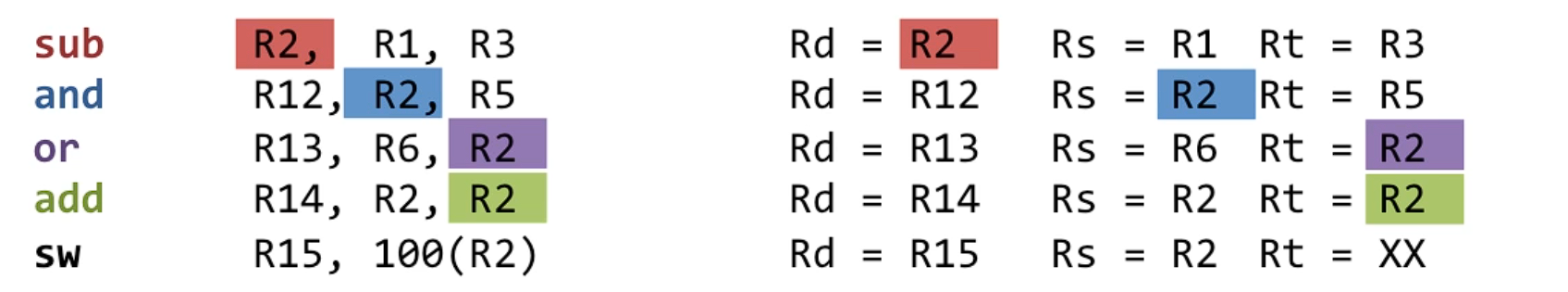 - 명령어 2가 R1 값을 필요로 함.