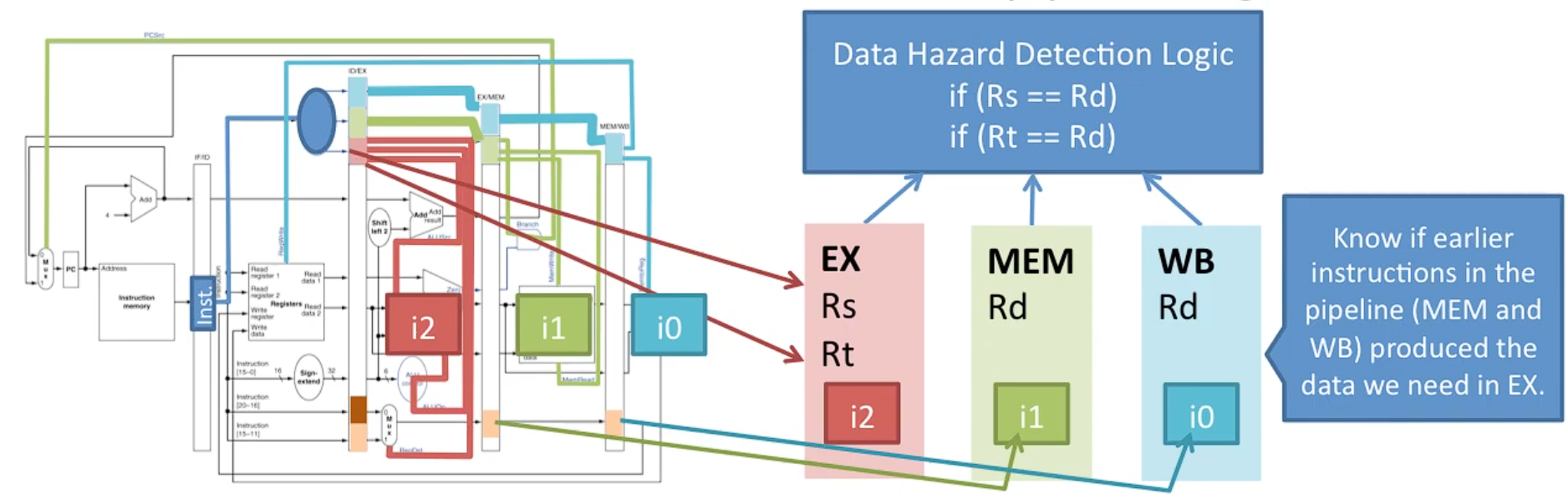 - 메모리(MEM) 및 쓰기 완료(WB) 단계에서 생성된 데이터와 비교.