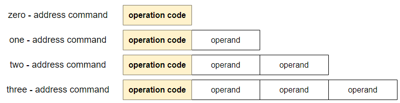 operand field 의 가능한 길이는 n-m 비트가 된다. 만약 커맨드가 three address command 라면 한 operation field 의 길이는 더 작아질 것이다. 그러나 만약 operand field 안에 메모리 주소가 담기면, 표현할 수 있는 데이터의 크기는 한 메모리 주소의 저장공간만큼 커지게 된다. (ex, 64비트)