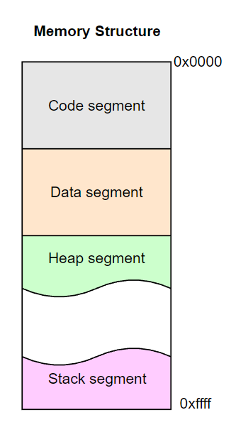아래 그림의 메모리 address 는 각각의 영역의 위치를 표현하기 위해 가정한 것이니 참고만 하기 바란다.