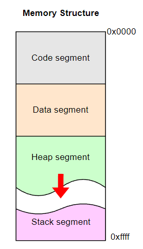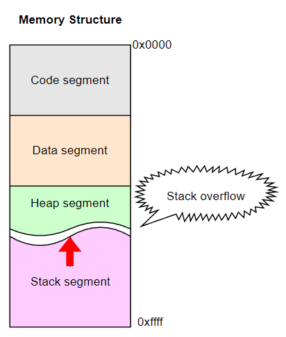 따라서 이 두 영역이 충돌하게 되는 일도 종종 발생하는데, 이를 어느 영역이 범위를 넘어갔냐에 따라 heap overflow 또는 stack overflow 라고 한다.