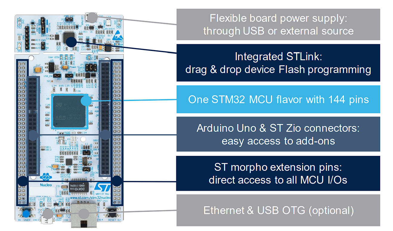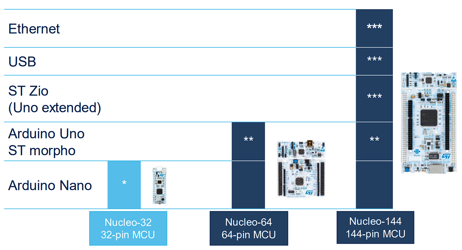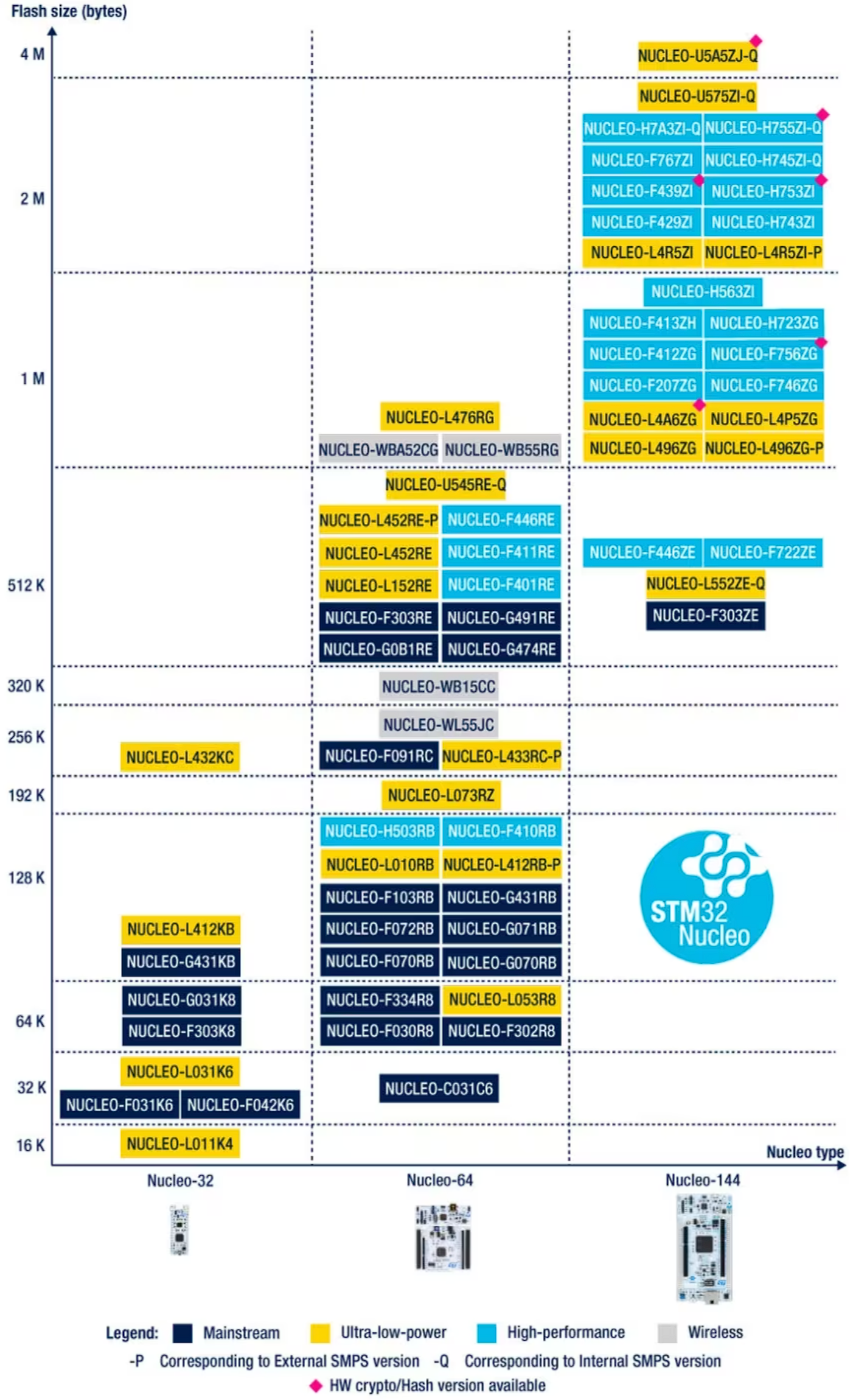 아래 그림으로 nucleo 보드의 라인업들의 특징을 대략적으로 파악할 수 있다.