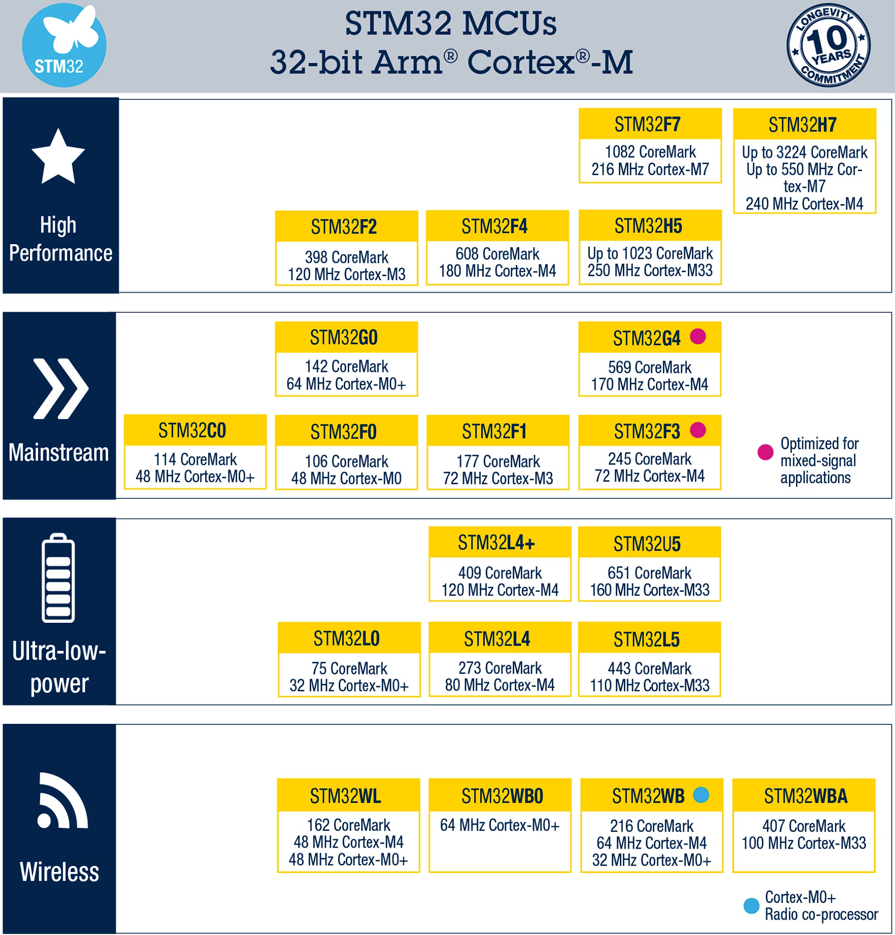 | STM32U | M33 기반의 차세대 저전력 프로세서 |