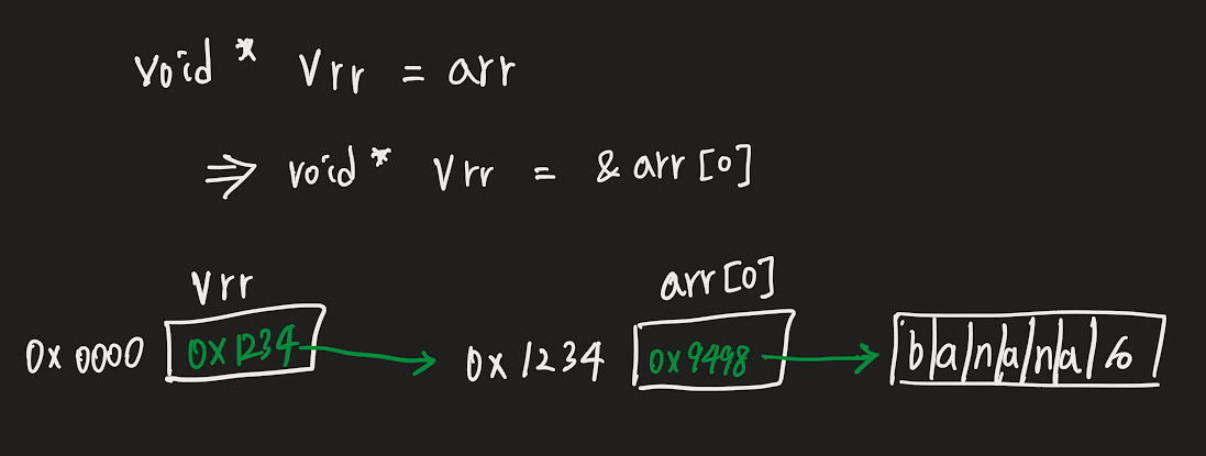 void 포인터와 arr 과의 관계는 다음과 같이 그려진다.