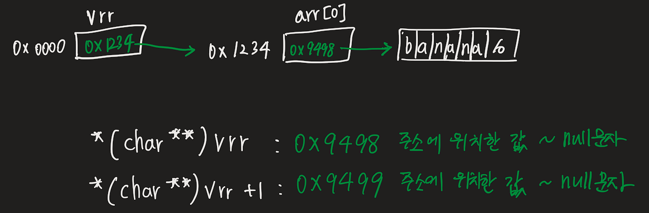 printf("*(char**)vrr : %s\n", *(char**)vrr); //결과는 banana