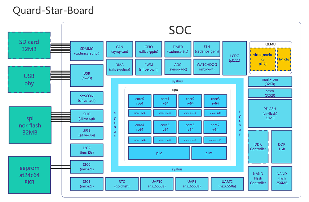 qemu 소스 디렉토리의 include/hw/riscv/quard-star.h 를 참고하면